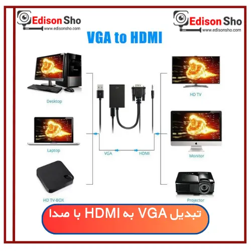 تبدیل VGA به HDMI با صدا، دستگاهی است که امکان انتقال تصویر و صدا از دستگاه‌های پیشرفته‌تر (مثل لپ‌تاپ‌ها و کامپیوترها) به صفحه‌نمایش‌های HDMI را فراهم می‌کند. ویژگی‌های اصلی این نوع تبدیل عبارتند از: