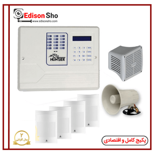پکیج دزدگیر هانتر سیم کارتی با 4 چشمی HUNTER شامل 1 عدد دستگاه دزدگیر هانتر لایت سیم کارتی و شهری ، 4 عدد سنسور چشمی سیم دار ، بلندگو و کاور بلندگو می باشد.