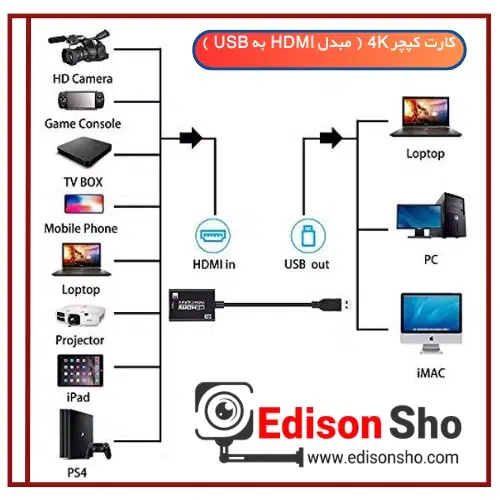 کارت کپچر 4K یک دستگاه پیشرفته است که سیگنالهای ویدیویی و صوتی با رزولوشن Ultra HD (4K) را از طریق پورت HDMI دریافت کرده و آنها را به صورت زنده به رایانه شما (از طریق **USB**) انتقال میدهد. این محصول ابزاری ضروری برای گیمرها، سازندگان محتوا، مدرسان آنلاین، مهندسان AV و هر کسی است که نیاز به ضبط یا پخش زنده ویدیوهای باکیفیت دارد.