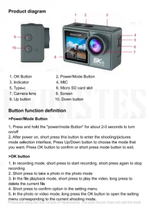 دوربین اکشن کمرا ضد آب 5K یک دوربین ورزشی حرفهای با کیفیت ضبط 5K و قابلیت ضد آب تا عمق 30 متر است که برای فعالیتهای آبی، ورزشی و ماجراجویانه ایدهآل میباشد. این دوربین با زاویه دید 170 درجه و رزولوشن 50