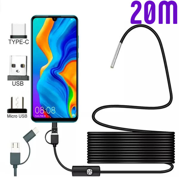 دوربین شلنگی و آندوسکوپی 20 متری با کیفیت 720P HD و رزولوشن 2 مگاپیکسل، تصاویر واضح و دقیق از مکانهای دور از دسترس ارائه میدهد. این دوربین دارای 8 چراغ LED قابل تنظیم است که نور لازم برای مکانهای تاریک یا کمنور را فرا
