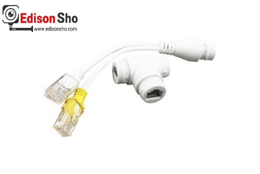 1- Combiner یا ترکیب کننده، که از دو کابل سوکت دار شبکه و یک مادگی شبکه تشکیل شده است. سوکت های سفید و زرد رنگ هر کدام به یک پورت سوئیچ PoE وصل می شوند.یک کابل شبکه نیز از مادگی شبکه به سمت قسمت دیگر رابط یعنی Splitter کشیده می شود.